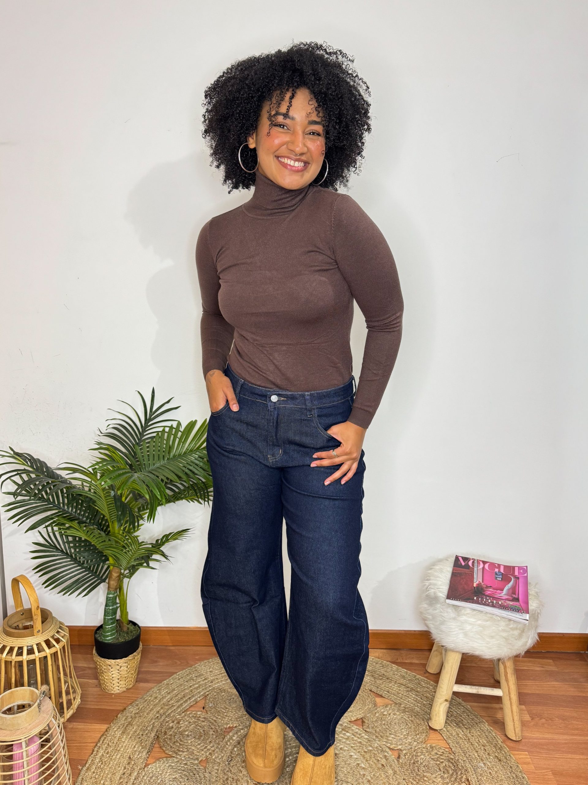 Calça modelo Ballon com elastano, favorecem a nossa silhueta