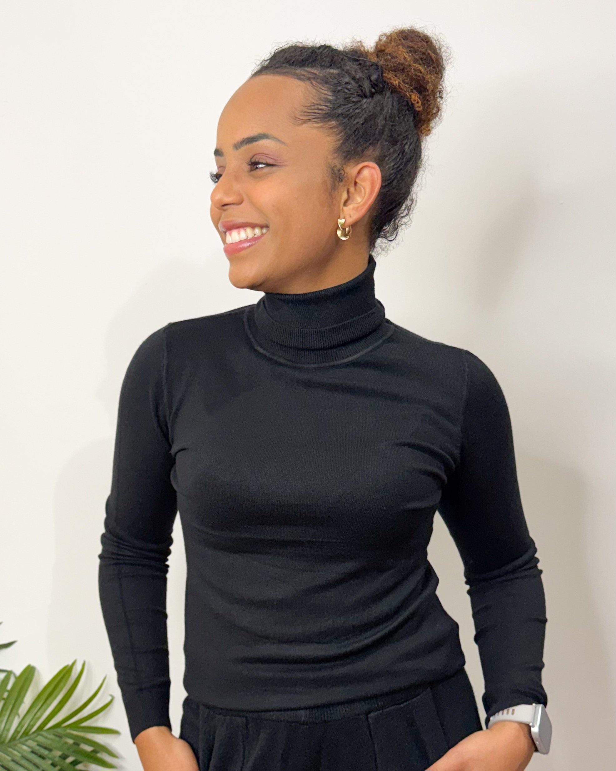 Com gola alta.